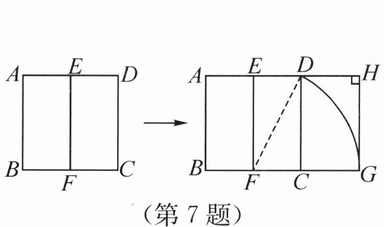 7. 宽与长的比是 $ \frac{\sqrt{5} - 1}{2} $(约 0.618)的矩形叫做黄金矩形,黄金矩形蕴藏着丰富的美学价值,给我们以协调和匀称的美感。我们可以用这样的方法画出黄金矩形:如图,作正方形 $ ABCD $,分别取 $ AD $,$ BC $ 的中点 $ E $,$ F $,连接 $ EF $,以点 $ F $ 为圆心,$ FD $ 为半径画弧,交 $ BC $ 的延长线于点 $ G $;作 $ GH ⊥ AD $ 交 $ AD $ 的延长线于点 $ H $,则下列矩形是黄金矩形的为(