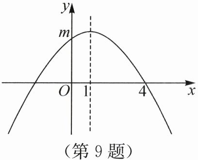 9. (2025·四川遂宁改编)如图,已知抛物线 $ y = ax^2 + bx + c $ 的对称轴是直线 $ x = 1 $,且抛物线与 $ x $ 轴一个交点的坐标是 $ (4,0) $,与 $ y $ 轴交点的坐标是 $ (0,m) $,其中 $ 2 < m < 3 $。给出下列结论: