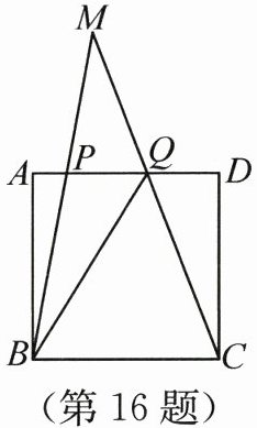 16. 亮点原创 如图,在正方形 $ ABCD $ 与 $ \triangle MBC $ 中,$ AD $ 分别与 $ MB $,$ MC $ 相交于点 $ P $,$ Q $。若 $ \triangle MBQ $ 的面积为 $ m $,正方形 $ ABCD $ 的边长为 $ n $,则 $ \frac{PQ}{BC} = $