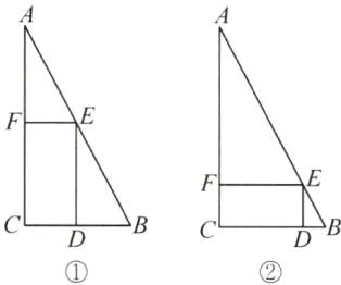 答案:25.因为$\angle C = 90^{\circ}$,$AB = 17$,$BC = 8$,所以$AC=\sqrt{AB^{2}-BC^{2}}=15$.不妨设点$D$,$E$,$F$分别在边$BC$,$AB$,$AC$上,则$EF// BC$,所以$\triangle AEF∼\triangle ABC$,所以$\frac{EF}{BC}=\frac{AF}{AC}$.设$EF = x$.分类讨论如下:①如图①,当$EF:CF = 1:2$时,$CF = 2x$,则$AF = AC - CF = 15 - 2x$,所以$\frac{x}{8}=\frac{15 - 2x}{15}$,解得$x=\frac{120}{31}$,所以$EF=\frac{120}{31}$,$CF=\frac{240}{31}$,所以$C_{矩形CDEF}=2(EF + CF)=\frac{720}{31}$;②如图②,当$CF:EF = 1:2$时,$CF=\frac{1}{2}x$,则$AF = AC - CF=15-\frac{1}{2}x$,所以$\frac{x}{8}=\frac{15-\frac{1}{2}x}{15}$,解得$x=\frac{120}{19}$,所以$EF=\frac{120}{19}$,$CF=\frac{60}{19}$,所以$C_{矩形CDEF}=2(EF + CF)=\frac{360}{19}$.