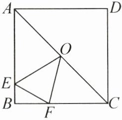 (2)因为$\angle EOF=45°$,所以$\angle AOE+\angle COF=180°-\angle EOF=135°$。因为$\angle EAO=\angle OCF=45°$,所以$\angle AOE+\angle AEO=180°-\angle EAO=135°$,所以$\angle AEO=\angle COF$,所以$\triangle AOE∼\triangle CFO$。