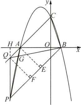 (3) 如图②,$P$为抛物线上一点,$Q$为射线$CA$上一点,且$P$,$Q$两点均在第三象限内,$Q$,$A$是位于直线$BP$同侧的不同两点.若点$P$到$x$轴的距离为$d$,$\triangle QPB$的面积为$2d$,且$\angle PAQ=\angle AQB$,求点$Q$的坐标.