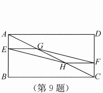 9. 如图,在矩形ABCD中,AB = 3,BC = 6.若点E,F分别在AB,CD上,且BE = 2AE,DF = 2FC,G,H是AC的三等分点,则四边形EHFG的面积为(