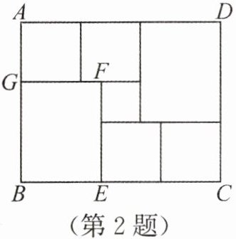 答案:2. A 解析:设5个正方形中小正方形的边长为$a$,大正方形的边长为$b$,则$AG=b$,$BG=b+a$,$BE=2b - a$,$CE=2b$,所以$AB=AG + BG=2b + a$,$AD=BC=BE + CE=4b - a$. 因为矩形$BEFG ∼$矩形$ABCD$,所以$\frac{BG}{AD}=\frac{BE}{AB}$,即$\frac{b + a}{4b - a}=\frac{2b - a}{2b + a}$,所以$b=\frac{3}{2}a$,所以$BG=\frac{5}{2}a$,$AD=5a$,所以$\frac{BG}{AD}=\frac{1}{2}$.