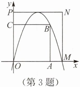 3. (3分) 亮点原创 如图,在平面直角坐标系中,O是原点,正方形OABC、正方形OMNP的边OA,OM在x轴上,点B,N在第一象限.若抛物线$y = ax^{2} + bx$的顶点与PN的中点重合,且经过点O,B,M,则正方形OABC与正方形OMNP的相似比为