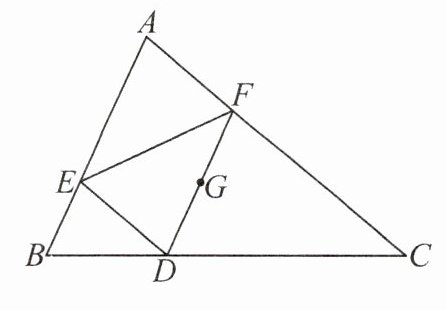 推理能力 如图,在△ABC中,点D,E,F分别在边BC,AB,AC上,DF经过△ABC的重心G,且DF//AB,DE//AC,连接EF.若AC=$\sqrt{2}$AB,求证:△DEF∽△ABC.