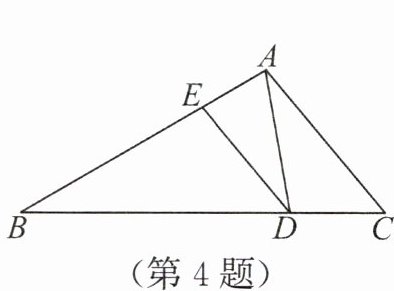 4. (3分) 如图, 在△ABC中, D, E分别是边BC, AB上的点, 且∠B = ∠ADE = ∠DAC. 若△ABC, △EBD, △DAC的周长分别记为m, $m_1$, $m_2$, 则$\frac{m_1 + m_2}{m}$的最大值是
