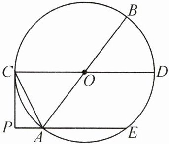 3. (13分)如图,AB,CD是⊙O的直径,AE是⊙O的弦,且AE//CD,过点C的⊙O切线与EA的延长线交于点P,连接AC.