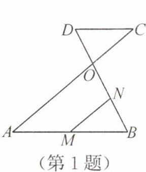几何直观 (2023·黑龙江哈尔滨)如图,AC,BD 相交于点 O,AB//DC,M 是 AB 的中点,MN//AC,交 BD 于 N. 若 DO:OB=1:2,AC=12,则 MN 的长为 (