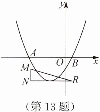 13. 如图,二次函数 $y = ax^2 + bx + c$ 的图像与 $x$ 轴相交于 A,B 两点,点 A 在点 B 的左侧,顶点在 △MNR 的边上移动,MN//$y$ 轴,NR//$x$ 轴,点 M 的坐标为(-6,-2),MN=2,NR=7. 若在抛物线移动过程中,点 B 横坐标的最大值为 3,则 $a - b + c$ 的最大值为