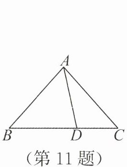 11. 如图,在△ABC 中,AB=AC=3,BC=4. 若 D 是边 BC 上的黄金分割点,且 BD > CD,则 △ABD 的面积为