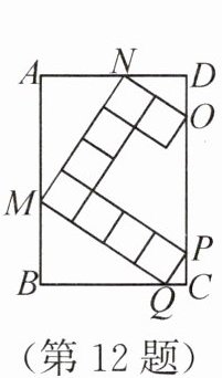 12. 如图,一个由 8 个正方形组成的“C”型模板恰好完全放入一个矩形框内,模板四周的直角顶点 M,N,O,P,Q 都在矩形 ABCD 的边上. 若 8 个小正方形的面积均为 1,则 AB 的长为
