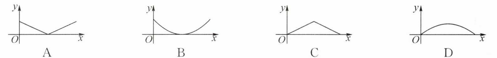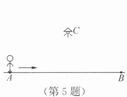 5. (4分) 如图,夜晚,小亮从点 $A$ 经过路灯 $C$ 的正下方沿直线走到点 $B$,他的影长 $y$ 随他与点 $A$ 之间的距离 $x$ 的变化而变化,那么表示 $y$ 与 $x$ 之间的函数关系的图像大致为(