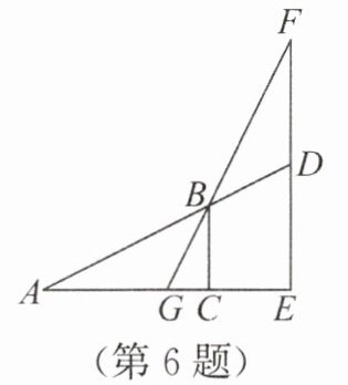 答案:6.A 解析:由题意,得$CE = 1m$,$AC = 2m$,所以$AE = AC + CE = 3m$.因为$BC// DE$,所以$\triangle ABC∼\triangle ADE$,所以$\frac{BC}{DE}=\frac{AC}{AE}=\frac{2}{3}$.因为$DE = \frac{1}{2}FE$,所以$\frac{BC}{FE}=\frac{1}{3}$.因为$BC// FE$,所以$\triangle GBC∼\triangle GFE$,所以$\frac{CG}{EG}=\frac{BC}{FE}=\frac{1}{3}$,所以$CG = \frac{1}{3}EG$.设$AG = xm$,则$CG = AC - AG = (2 - x)m$,$EG = AE - AG = (3 - x)m$,所以$2 - x = \frac{1}{3}(3 - x)$,解得$x = \frac{3}{2}$,即$AG = \frac{3}{2}m$.故射灯$A$应向皮影人移动的距离$AG$为$\frac{3}{2}m$.