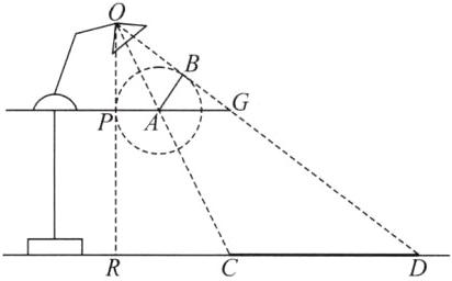 (2) 桌面上一点 $P$ 恰在点 $O$ 的正下方,且 $OP = 36$ cm,$PA = 18$ cm,$AB = 18$ cm,桌面的高度为 60 cm. 在点 $O$ 与 $AB$ 所确定的平面内,将 $AB$ 绕点 $A$ 旋转,使得 $CD$ 的长最大. 画出此时 $AB$ 所在位置的示意图,并求 $CD$ 长的最大值.