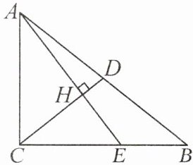 答案:6.(1)因为AE⊥CD,所以∠AHC = ∠AHD = 90°.因为HD = 1,AH = $\sqrt{15}$,所以AD = $\sqrt{HD^{2}+AH^{2}} = 4$.因为CD是Rt△ABC斜边AB上的中线,所以CD = AD = $\frac{1}{2}$AB = 4,所以CH = CD - HD = 3,所以AC = $\sqrt{AH^{2}+CH^{2}} = 2\sqrt{6}$.