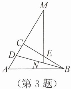 3. (3分)如图,在Rt△ABC中,∠ACB=90°,∠ABC的平分线交AC于点D,点M在线段AC的延长线上,点N在线段BD上,MN经过BC的中点E,MD=MN。若sin A=$\frac{6}{7}$,则$\frac{BN}{DN}$的值为(