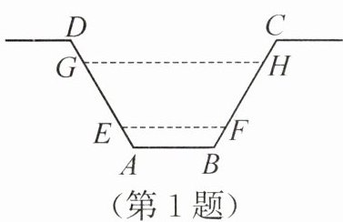 放水前水面宽$EF = 1.2m$,放水后水面宽$GH=2.1m$,等腰梯形两腰对称,故水面宽度增加量的一半等于水平宽度,即: