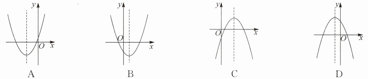 当$a>0$时,抛物线开口向上,对称轴$x=-\frac{b}{2a}<0$,与$y$轴交点$(0,-c)$在$y$轴负半轴,无符合选项。