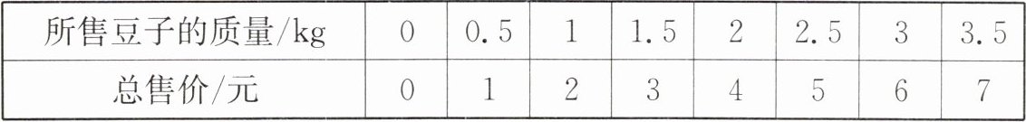 4. (4分)上分点一 一种豆子的总售价与所售豆子的质量之间的数量关系如下表: