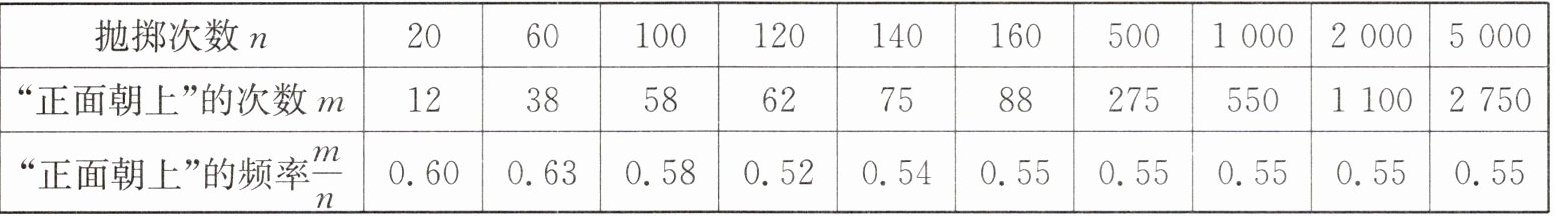 则抛掷这枚棋子出现“正面朝上”的概率约为 (