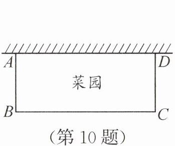 10. (2023·天津·3分)如图,要围一个矩形菜园ABCD,其中一边AD靠墙,且AD的长不能超过26m,其余的三边AB,BC,CD用篱笆,且这三边长的和为40m.给出下列结论:①AB的长可以为6m;②AB的长有两个不同的值满足菜园ABCD的面积为192m²;③菜园ABCD面积的最大值为200m².其中正确的是