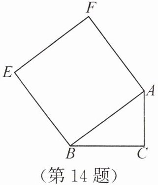 答案:14. $\frac{1}{3}$或$\frac{5}{9}$ 解析:因为$AC=3,BC=4,AB=5$,所以$AC^2+BC^2=AB^2$,所以$\triangle ABC$是直角三角形,且$\angle ACB=90°$.因为四边形$ABEF$是正方形,所以$\angle ABE=90°,BE=AB=5$.因为$CD=1$,所以分类讨论如下:①如图①,当点$D$在线段$BC$上时,设直线$l$与$BE$交于点$M$,则$BD=BC-CD=3$.因为$PD=\frac{2}{3}DE$,所以$\frac{PD}{DE}=\frac{2}{3}$.因为直线$l// BC$,所以$\angle BGM=\angle ABC$,$\frac{BM}{BE}=\frac{PD}{DE}=\frac{2}{3}$,所以$BM=\frac{2}{3}BE=\frac{10}{3}$.因为$\tan\angle BGM=\tan\angle ABC=\frac{AC}{BC}=\frac{3}{4}$,所以$\frac{BM}{BG}=\frac{3}{4}$,所以$BG=\frac{4}{3}BM=\frac{40}{9}$,所以$AG=AB-BG=\frac{5}{9}$.因为$GH// BC$,所以$\triangle AGH \backsim \triangle ABD$,所以$\frac{GH}{BD}=\frac{AG}{AB}=\frac{1}{9}$,所以$GH=\frac{1}{9}BD=\frac{1}{3}$;②如图②,当点$D$在线段$BC$的延长线上时,$BD=BC+CD=5$.同理可得$GH=\frac{1}{9}BD=\frac{5}{9}$.综上所述,$GH$的长是$\frac{1}{3}$或$\frac{5}{9}$.