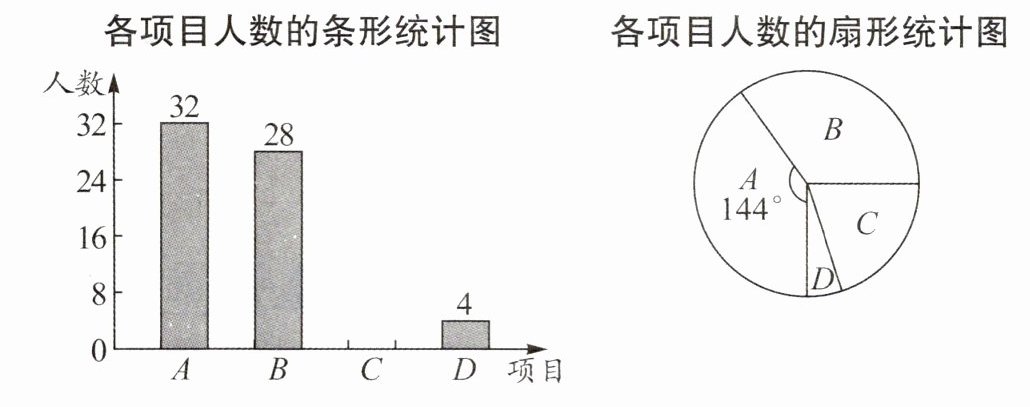(2)在扇形统计图中,求项目$C$所在扇形的圆心角度数;