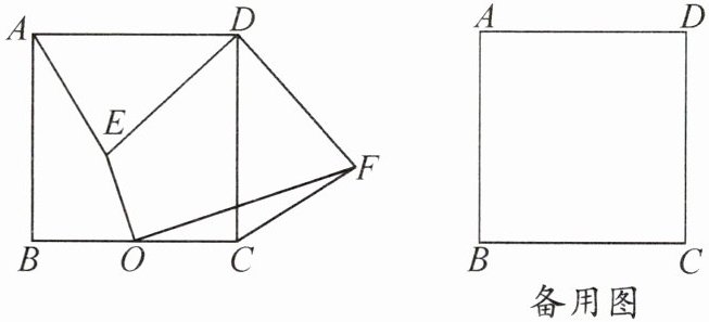 推理能力 如图,在正方形 $ ABCD $ 中,$ AB = 2\sqrt{5} $,$ O $ 是 $ BC $ 的中点,$ E $ 是正方形内一动点,$ OE = 2 $,连接 $ DE $,将线段 $ DE $ 绕点 $ D $ 逆时针旋转 $ 90^{\circ} $ 得到线段 $ DF $,连接 $ AE $,$ CF $,$ OF $.