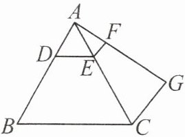 答案:【思路分析】(1)根据已知,易求 $AC$ 的长,则根据线段和差可得 $EC$ 的长;(2)要证 $AD· AG = AF· AB$,只要证 $\frac{AD}{AB}=\frac{AF}{AG}$. 由 $DE// BC$,$EF// CG$,易知 $\frac{AD}{AB}$,$\frac{AF}{AG}$ 都等于 $\frac{AE}{AC}$,于是可证得结论成立.