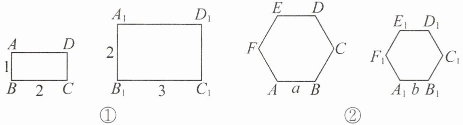 (2)如图②,多边形 $ABCDEF$ 和多边形 $A_1B_1C_1D_1E_1F_1$ 都是各边相等、各角也相等的六边形,它们是相似图形吗?为什么?