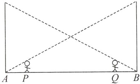 【变式2】如图, 小华在晚上由路灯 $ A $ 走向路灯 $ B $. 当他走到点 $ P $ 时, 发现他身后影子的顶部刚好接触到路灯 $ A $ 的底部; 当他向前再步行 $ 12 $ m 到达点 $ Q $ 时, 发现他身前影子的顶部刚好接触到路灯 $ B $ 的底部. 已知小华的身高是 $ 1.6 $ m, 两个路灯的高度都是 $ 9.6 $ m, 且 $ AP = BQ $.