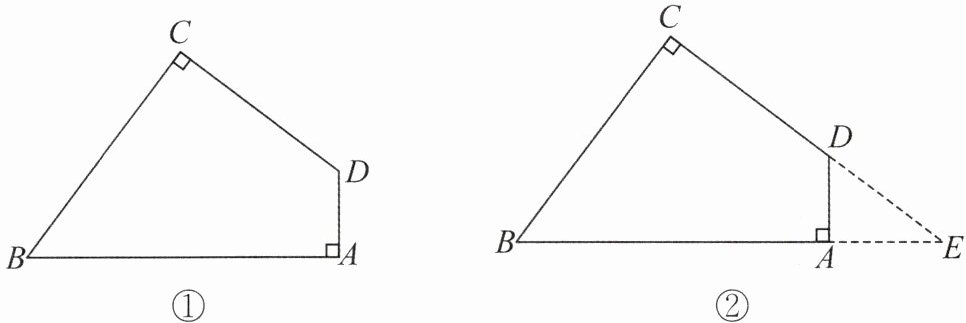 答案:【思路分析】由$\angle C = 90^{\circ}$,$DA = 3$,可以想到延长$CD$,$BA$,使它们相交构成直角三角形,这样可把求四边形$ABCD$的面积转化成求两个直角三角形的面积之差。