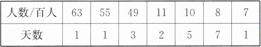(2)选用平均数比中位数更合适.推断全年参观市博物馆的客流量为$20×365 = 7300$(百人).
