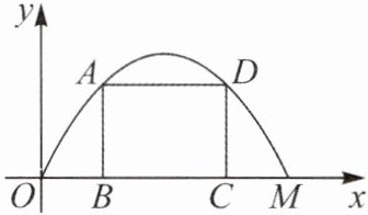 (2) 施工队计划在隧道门口搭建一个矩形“脚手架” $ ABCD $, 使点 $ A $, $ D $ 在抛物线上, 点 $ B $, $ C $ 在地面 $ OM $ 上. 为了筹备材料, 请求出“脚手架”三根木杆 $ AB $, $ AD $, $ CD $ 长度之和的最大值.