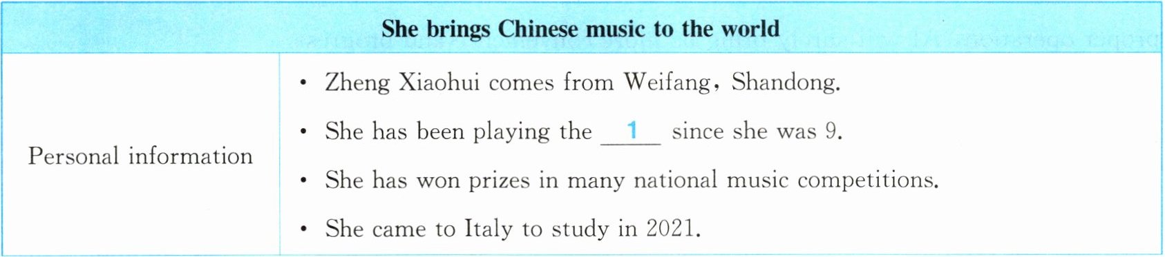 Zheng comes from Weifang, Shandong Province. She has been playing the *erhu* since she was 9. She has won prizes in many national music competitions.