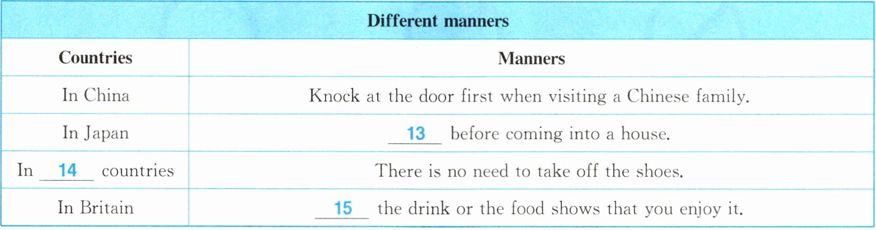 )13. A. Take off the shoes