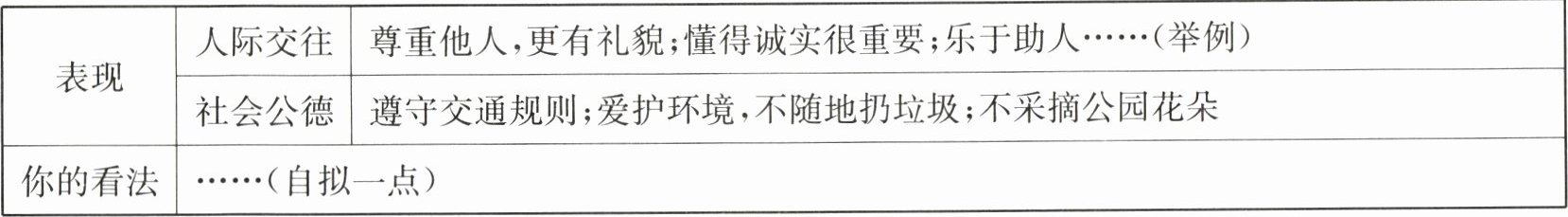 今年年初,你们学校组织同学们学习“八礼四仪”并开展了“争做文明市民”的活动。同学们在社会公德、人际交往方面都比以前有了很大进步。请根据表格中的要点,以“To be a civilized citizen”为题写一篇英语短文,介绍同学们现在的表现(可结合具体事例适当发挥),并谈谈自己对这个活动的看法。词数 100 左右。