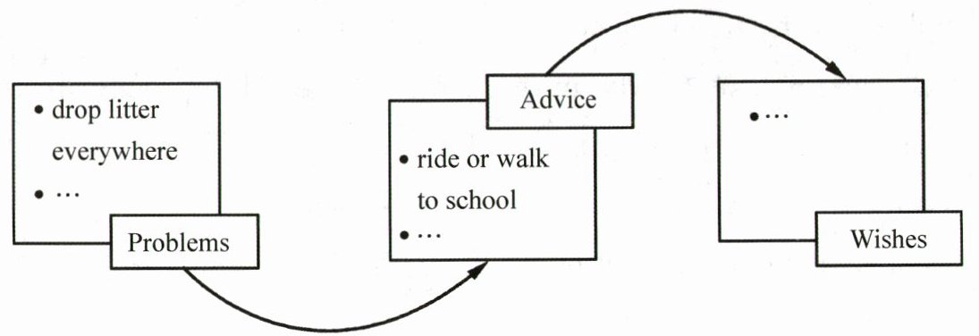 To create a greener city, we can ride or walk to school instead of taking a car. Also, we can plant more trees and flowers. Besides, it's a good idea to separate the rubbish into different groups so that things like bottles and cans can be recycled.