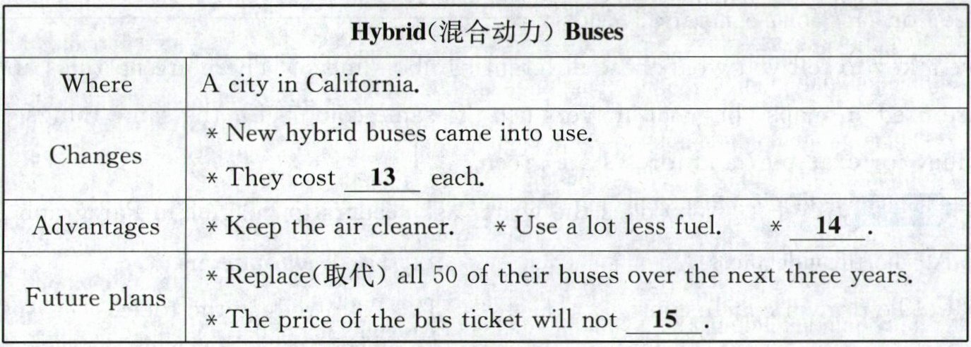 听第一篇短文,回答第13—15小题。请根据短文内容,选择正确答案,完成信息记录表。