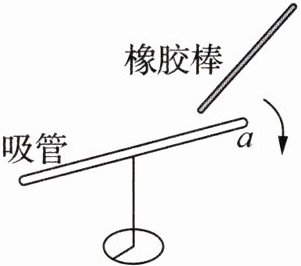3. (2025·江苏镇江)如图所示,把一根中间戳有小孔的吸管放在转轴上,吸管能在水平面上自由转动。用餐巾纸摩擦吸管使其带电,将用毛皮摩擦过的橡胶棒放在带电吸管 $ a $ 端附近,吸管转离橡胶棒,则(