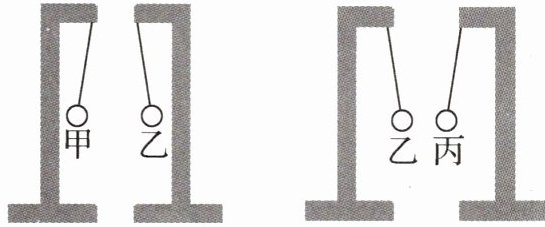 甲、乙、丙三个轻质小球用绝缘细线悬挂,相互作用情况如图所示。如果丙带正电,则甲(