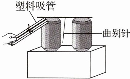 塑料吸管与毛皮摩擦后带电,接触易拉罐(导体)使其带电;带电易拉罐吸引轻小物体曲别针,曲别针撞击易拉罐后带上同种电荷;同种电荷相互排斥,曲别针被弹开,因惯性撞击另一易拉罐并使其带电;曲别针与另一带电易拉罐带同种电荷再次被排斥,如此反复左右摆动撞击易拉罐发声。