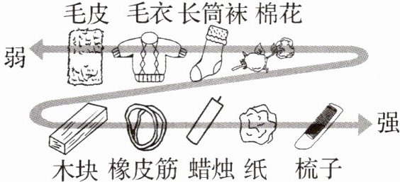 11. (2025·辽宁盘锦二模)如图所示是部分不同物质的原子核对电子束缚能力强弱的排序,毛皮与蜡烛摩擦,蜡烛将带