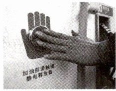 9. 如图,加油站工作人员提取油枪加油前,手必须触摸静电释放器,以清除身体上的静电,确保安全。下列说法正确的是(