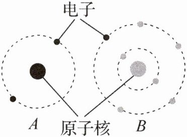 6. 如图是两个不同种类的物体 A 和 B 在摩擦时原子之间电荷转移情况的示意图,可知 A 物体原子核束缚电子的本领较