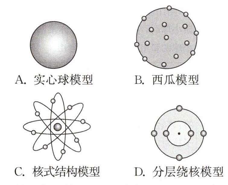 1. 20 世纪初,科学家在探索物质结构的历程中取得了突破性进展. 最终卢瑟福通过 α 粒子散射实验验证了以下图示哪个原子结构模型(