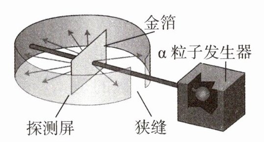 12. 如图是 α 粒子散射实验示意图. 著名科学家卢瑟福进行了 α 粒子散射实验,结果发现,绝大多数 α 粒子穿过金箔后仍沿原方向前进,但是有少数 α 粒子却发生了较大的偏转,并且有极少数的 α 粒子偏转超过 90°,有的甚至几乎达到 180°,像是被金箔弹了回来.