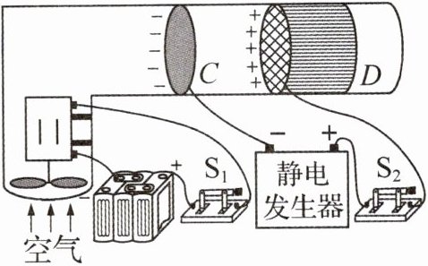 学科融合 如图所示是 PM2.5 净化器的原理图,净化器开始工作后,风扇旋转吸入含有 PM2.5 颗粒物的空气,当颗粒物接近带有负电荷的光洁金属网 C 时,会被快速吸引过来,这是因为带电体具有