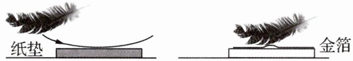 羽毛不带电,划过纸垫后带正电,是因为羽毛失去电子。
